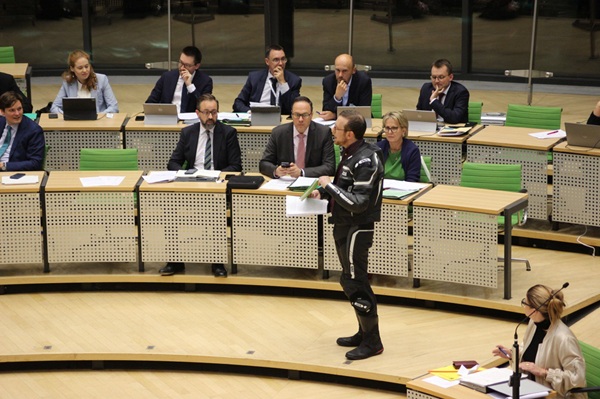 Nico Rudolph ist, wie gesagt, selbst Biker. Da lag es nahe, beim Vortrag des Antrages angemessen gekleidet zu sein. Nur: Angemessen für wen? Für Rudolph war es eine Ehrensache, sich vor seinem Auftritt im Landtag in seine Bikerklamotten zu zwängen. Das mag nicht so aufwändig sein wie das Steigen in einen Raumfahrtanzug, geht aber über das bequeme Überstreifen einer Jogginghose doch weit hinaus, ist also nicht ohne.